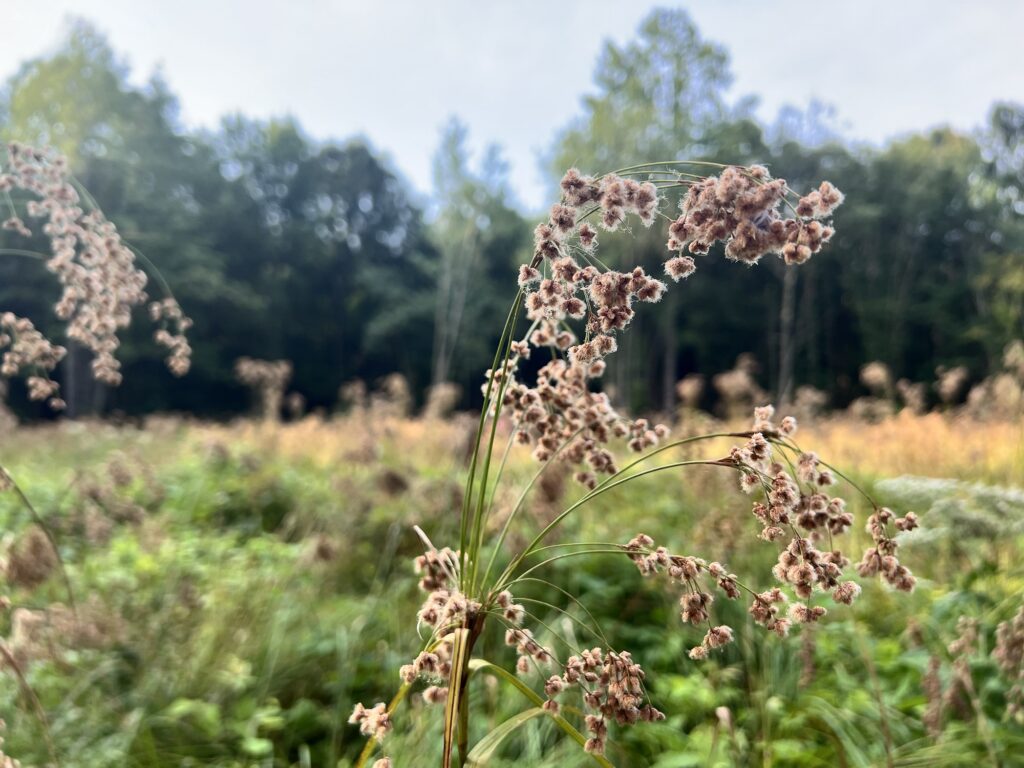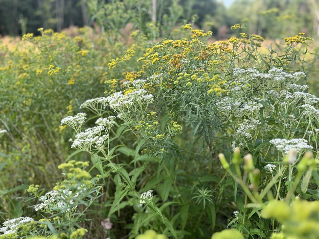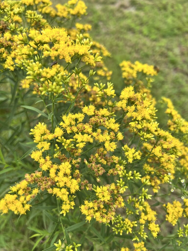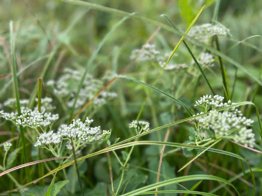 The garden and the fields are going to seed. The weeds and wildflowers are bursting with color, as ornate as any good and proper flower.